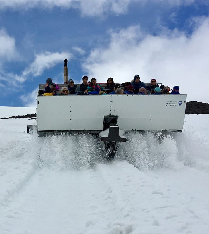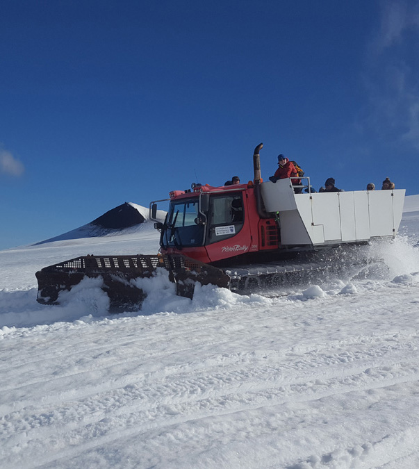 Ferðin tekur 2,5 til 3 klukkustundir. Við ferjum ykkur frá Stóra-Kambi upp að snjólínu og ökum þaðan með ykkur í opnu farþegarými snjótroðarans áður en við höldum niður aftur.