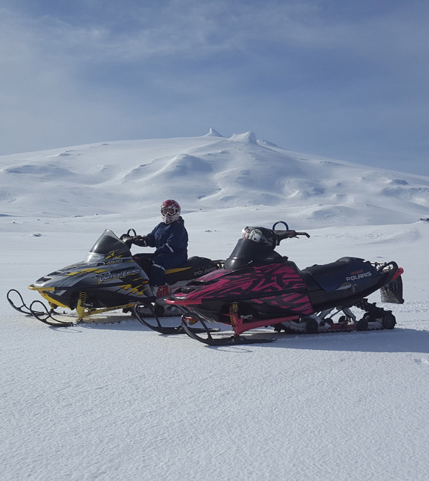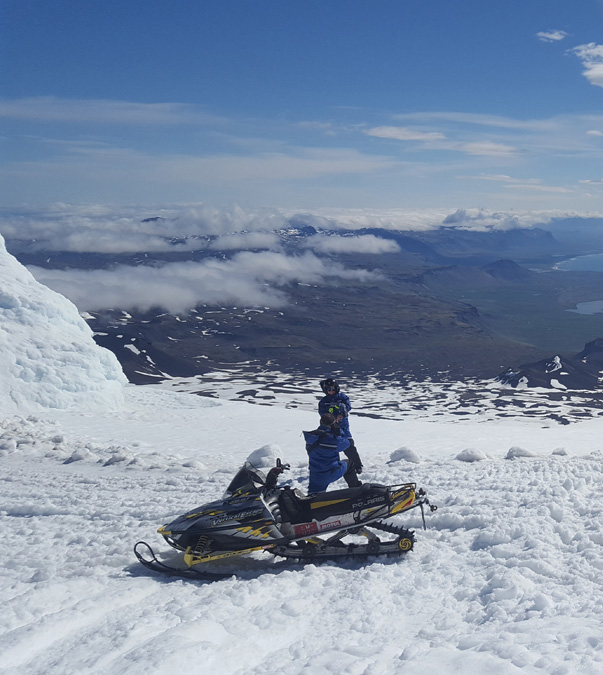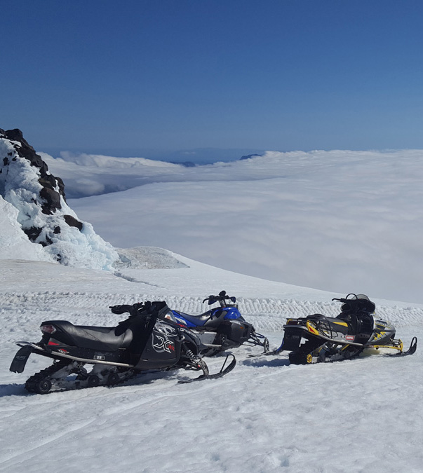 Þessi ferð tekur um tvær klukkustundir. Við ferjum ykkur frá Stóra-Kambi upp að snjólínu og þaðan akið þið sjálf upp á jökulinn á vélsleða undir traustri leiðsögn fararstjóra okkar. Á toppi jökulsins gefum við ykkur 20 mínutur til að dásama útskýnið og taka myndir.